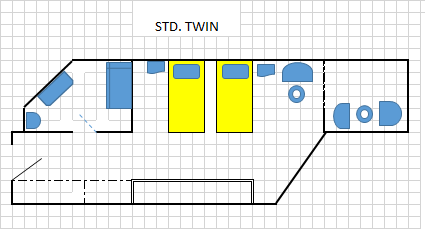 Standart odalarda 1 çift kişilik yatak veya 2 tek kişilik yatak bulunmaktadır.