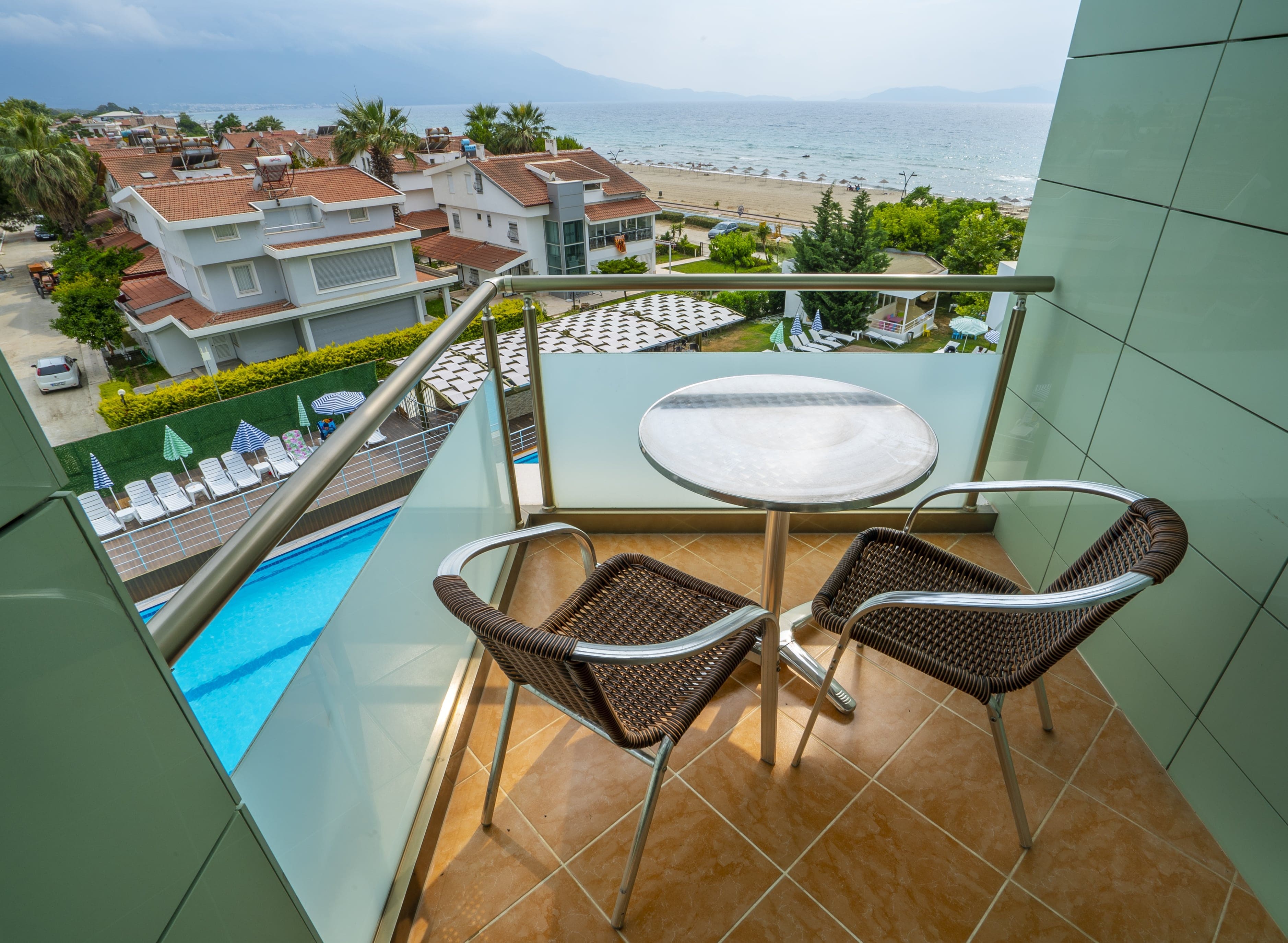 27 m² genişliğinde ferah ve deniz manzaralıdır.
